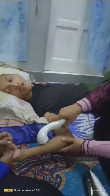 The video shows a cerebral palsy teen who can't move his hands for weeks manages to lift his hand up with therapy with Gelam Aromatheraphy gel.